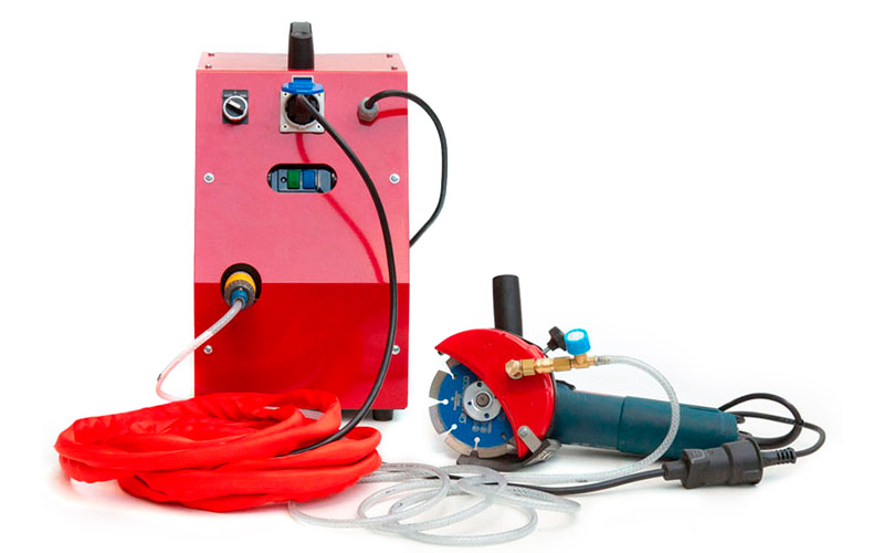 Fabricante de sistemas profesionales para eliminar el polvo cuando trabajas con amoladoras en obras de construcción, reformas, rehabilitación, y talleres para transformación de piedra y marmol.